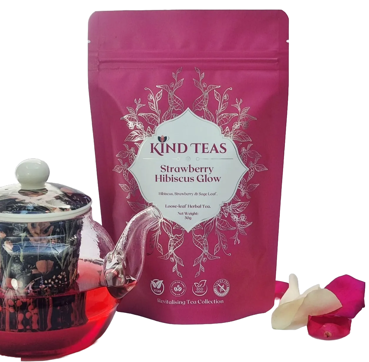 Kind Teas crafts botanical herbal blends using whole, plant-powered ingredients, never fillers, sweeteners, or tea dust. Each small-batch tea supports wellness with botanicals like hibiscus, chamomile, and adaptogens, ethically sourced and packaged in eco-conscious materials to reflect our commitment to purity, sustainability, and the art of tea-making at its finest.